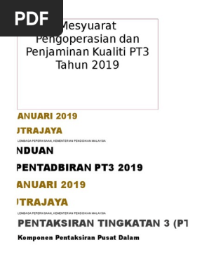 Muat turun halaman 1-50 di FlipHTML5. Memandangkan kertas soalan PT3 adalah dokumen terperingkat terhad semua kakitangan pentadbiran dan pentaksiran adalah bertanggungjawab terhadap kerahsiaan dan keselamatan kertas soalan itu katanya. View flipping ebook version of BUKU MANUAL PENGURUSAN DAN PENTADBIRAN SEKOLAH 2019 published by nitt nuar on 2018-12-19.